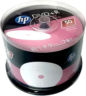 HP DVD+R DL Double Layer 8X 8.5GB White Inkjet Printable 50 Pack in Cakebox |