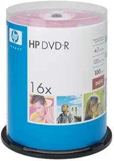 HP DVD-R 4.7GB 16X White Inkjet Printable 100 Pack in Spindle |